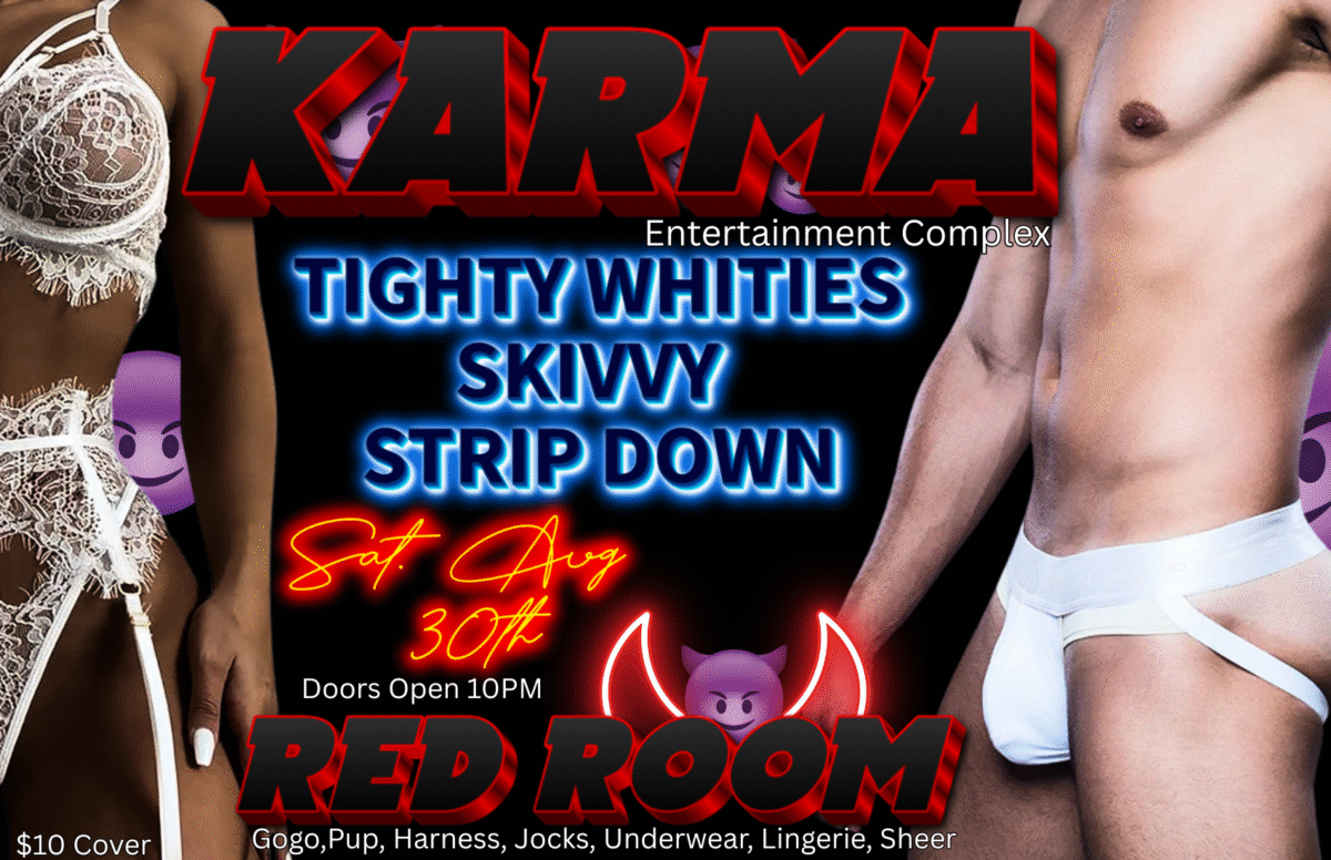 Red Room, or The more sensual floor will be ooen Labor Day Weekend for our Tighty Whitey Party….